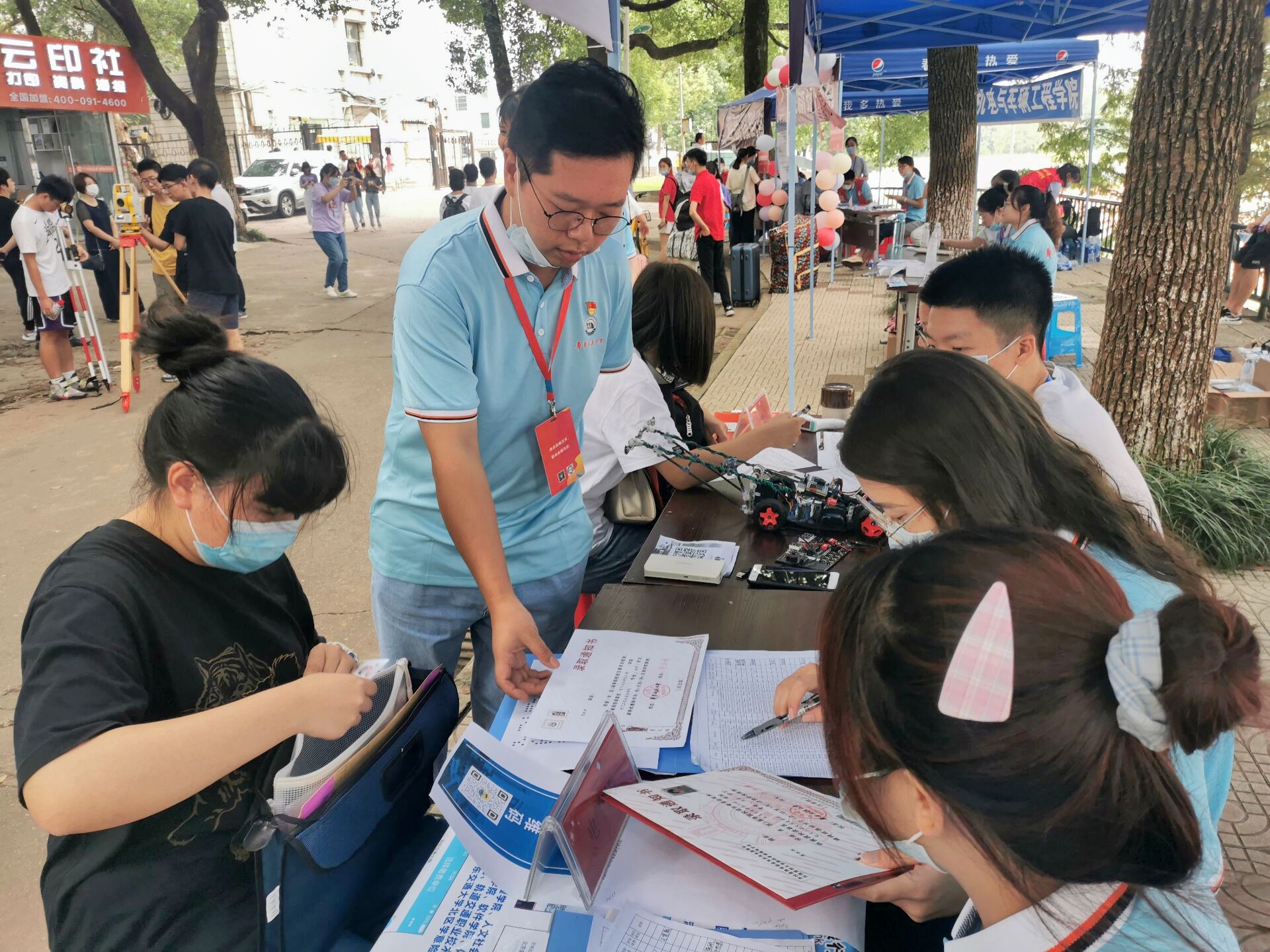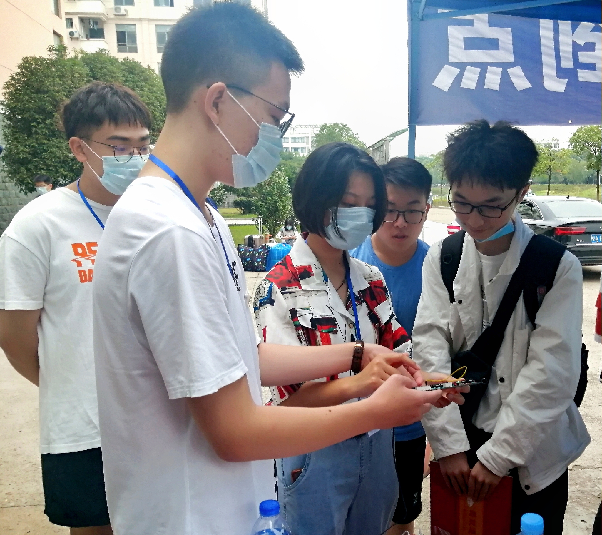 新生报到期间,还有特殊志愿者组成的安全小组,不间断地在宿舍楼内巡逻,宣传防诈骗安全知识,并提供咨询服务,确保无推销员等无关人员出现在寝室楼内,保护新生权益。在等待过程中,电子科技协会的同学在报道处为新生展示科技小作品并且进行详细讲解,让初来乍到的同学们感受到科技魅力,认识到科创电气。