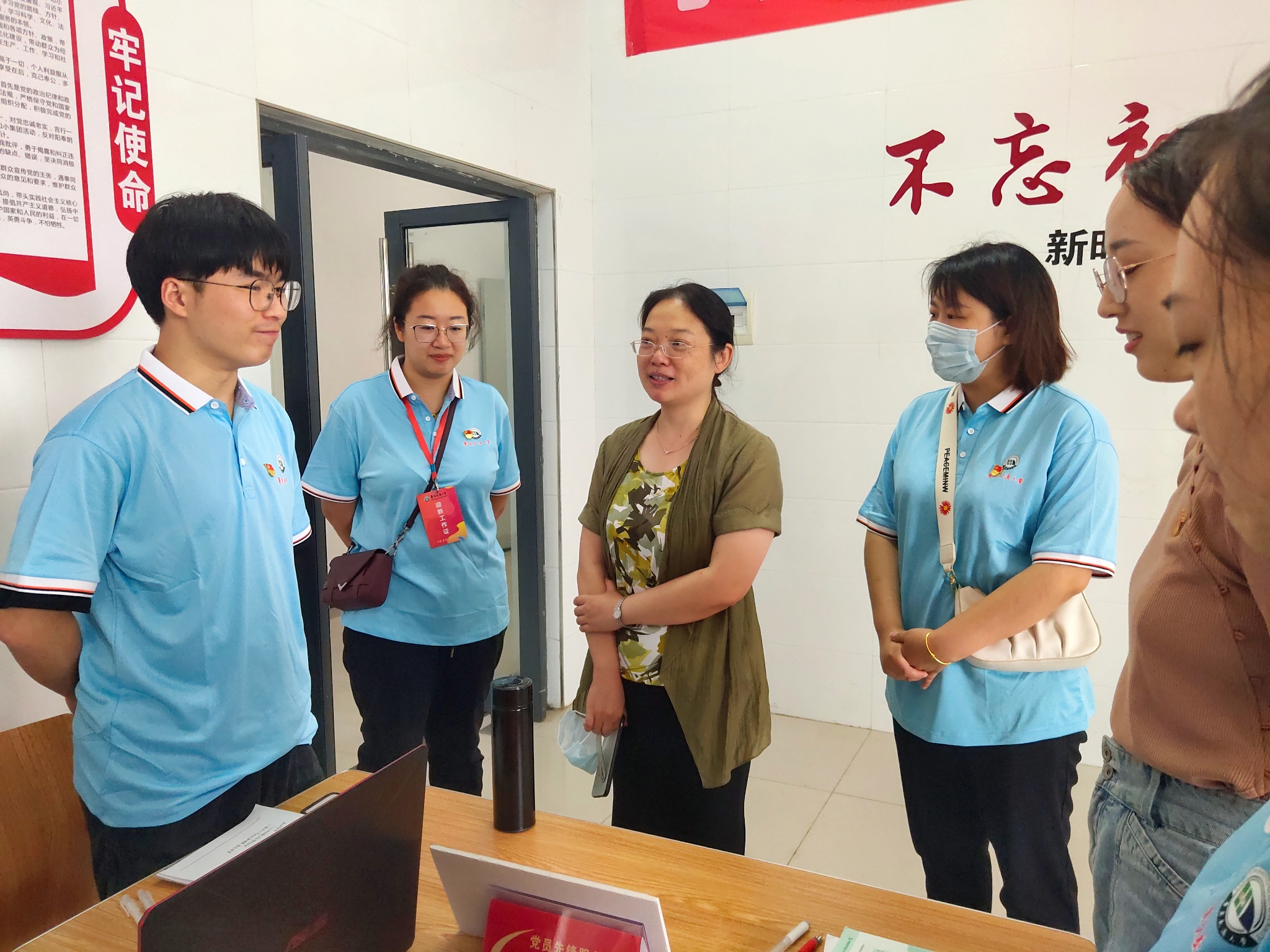 随着迎新工作的进行,公司党委书记赵敏,党委副书记刘修财前往迎新站点视察工作,学工办辅导员陪同。在站点旁,赵敏、刘修财与新生一同观看科技成果展示,并对志愿者们的工作表示肯定。赵敏说道:“迎新工作于学院而言至关重要,因此,各部分工作要做到谨慎细致,各部门人员要紧密配合,加快进程,让新生少等待,让工作更高效。”