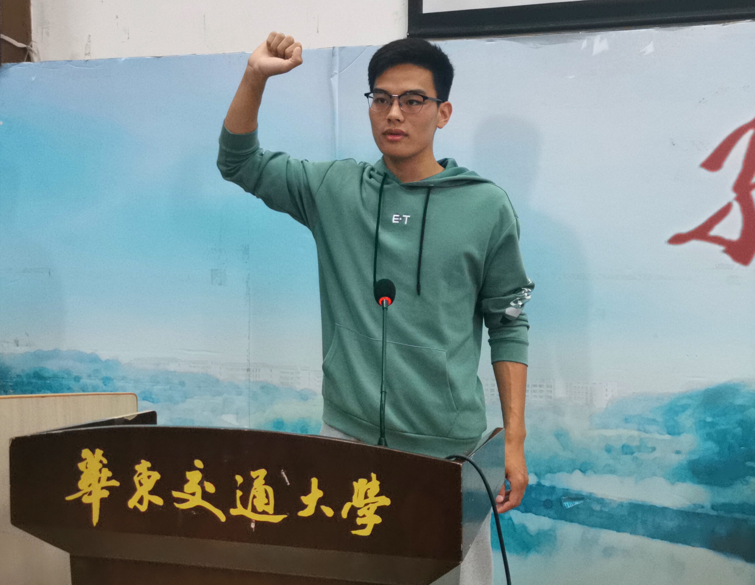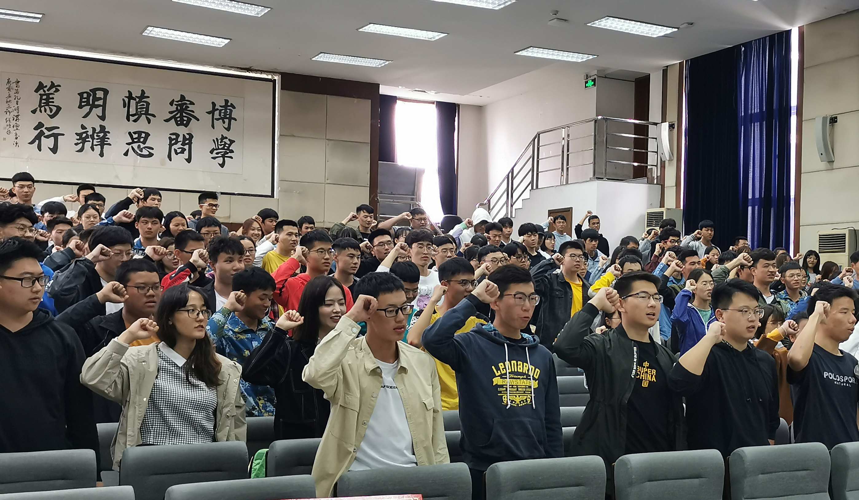 会议最后,田径队全体成员在邓爱斌的带领下进行校运会宣誓。