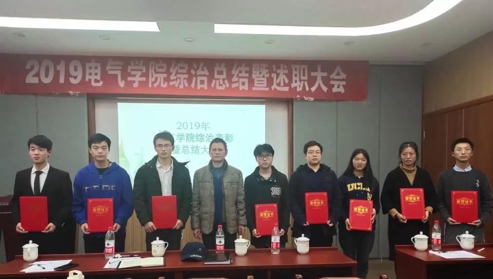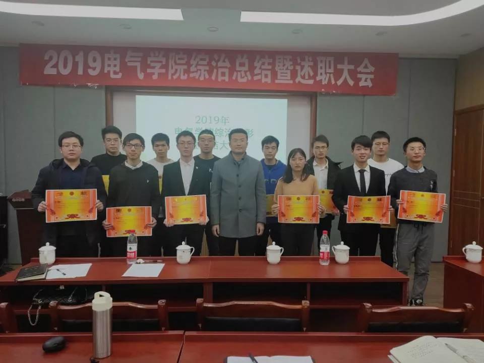 经评定,16级电力牵引三班、16级过程控制一班、17级电气卓越班、17级电力牵引一班、17级工业自动化一班、18级电气四班、18级电气十班、18级建电一班八个班级获得本年度“综合治理工作先进班级”称号。由李俊为获奖班级颁奖。