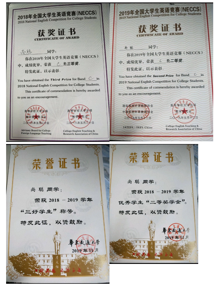 尚聪,女,永利app,铁道电气化2017-3班员工,学习绩点3.94。在校期间获2017-2018学年特等奖学金,2018-2019学年二等奖学金,2019-2020学年一等奖学金,2017-2018学年“三好员工”,2018-2019学年“三好员工”等荣誉,2018年全国老员工英语竞赛c类国家三等奖,2019年全国老员工英语竞赛c类国家二等奖。现保研至西南交通大学。
