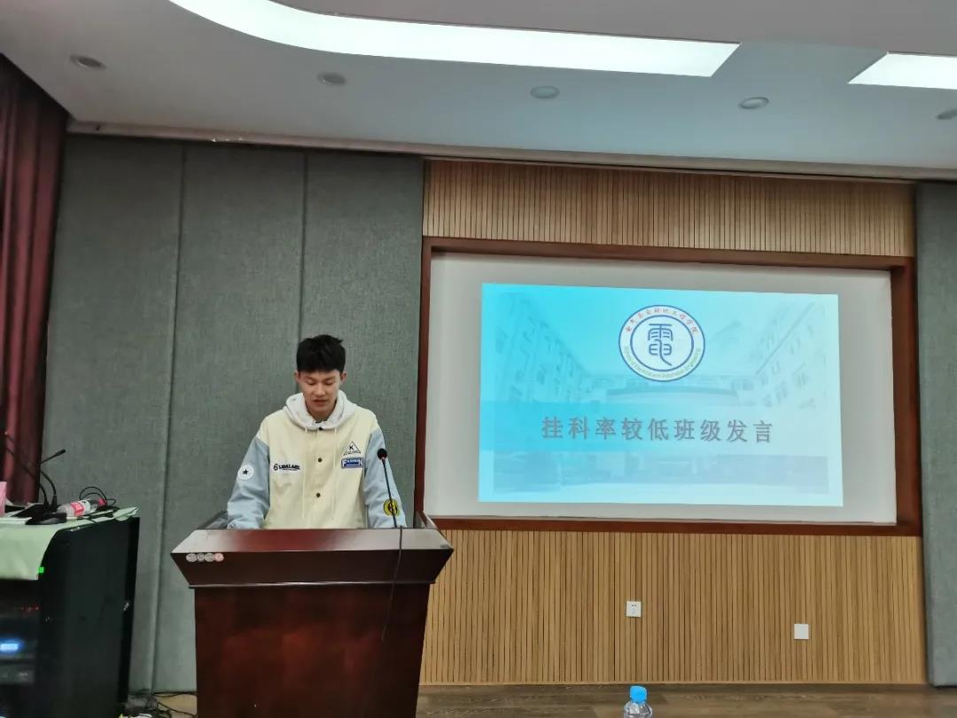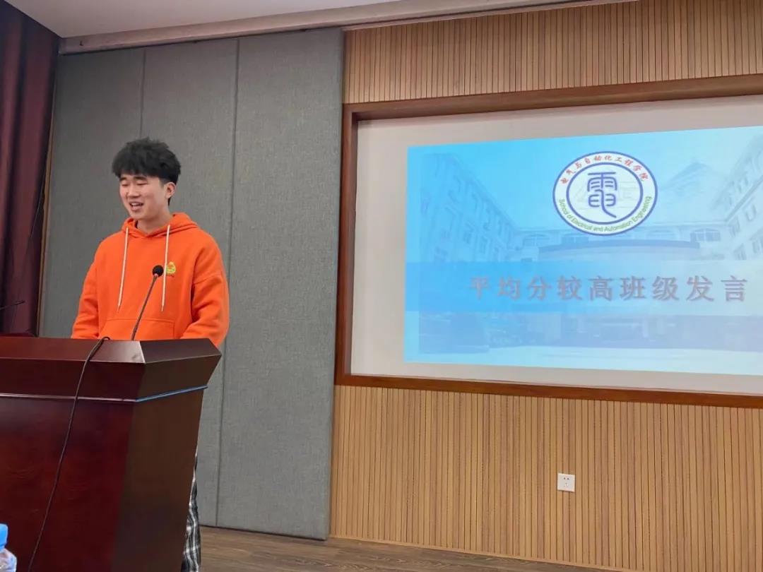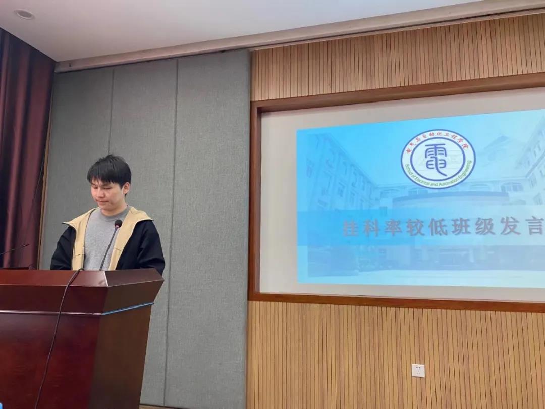 会议第二阶段由各班代表总结考试情况,分享学风建设经验。其中2018级电牵1班、2019级电气7班、2020级电气7班作为平均分较高班级代表,2018级电化2班、2019级电气10班、2020级电气6班作为挂科率较低班级代表发言。20级电气7班石松分享了班级学风建设经验:“以凝聚力为基础,组织班级团建活动,增强同学们的集体荣誉感;以科学管理为核心,采用每日学习打卡制度督促班级成员温习功课;以人文关怀为支撑,与基础较差同学交流沟通,安排同学一对一辅导。”20级电气6班郭浩楠也向同学们提出了自己的建议:合理分配时间、巩固所学知识、勤奋练习查漏补缺、深入研究题目知识点。