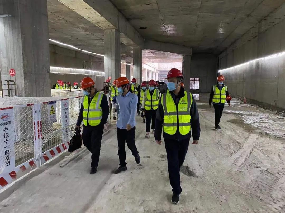 会后,韦宝泉、刘修财一行参观了项目党支部的党建文化墙与党员活动室,并到施工场地进行了实地的考察学习。