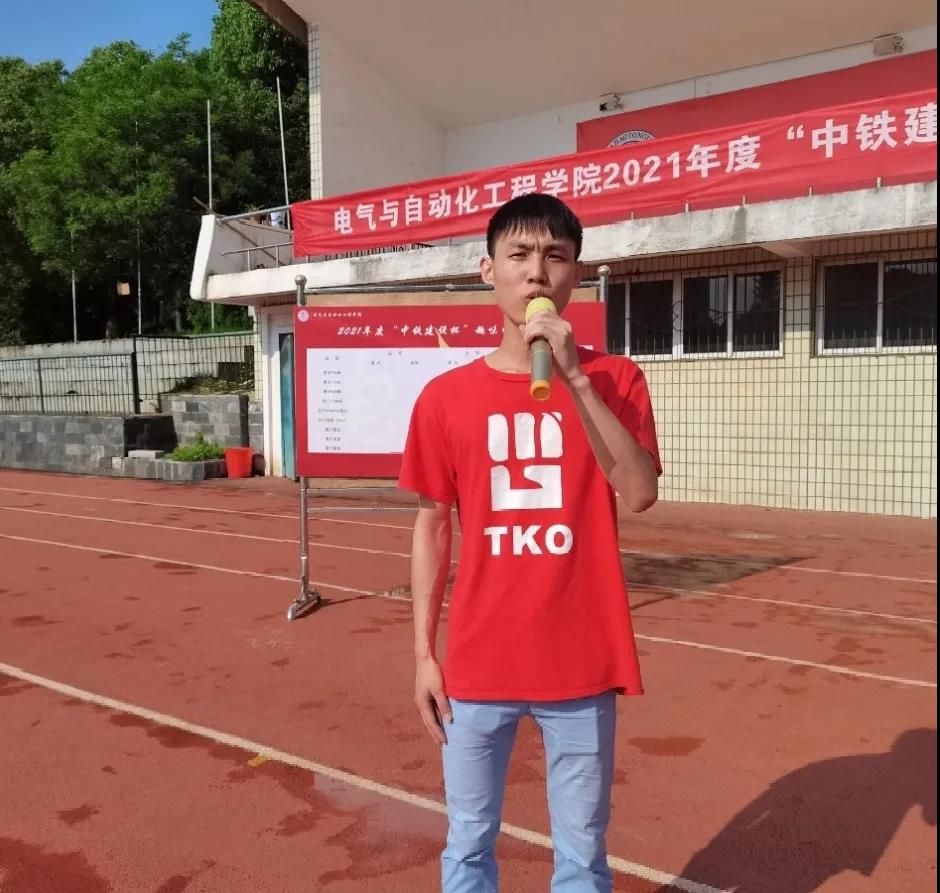 可华雄代表中铁建设集团江西工程有限公司发言。他表示,中铁建设集团江西工程有限公司与公司本着“优势互补、资源共享、互惠双赢、共同发展”的原则,共同开展实习、培训、毕业生就业、教师实践等多方面、多层次的校企合作,此次赞助开展“中铁建设杯”趣味田径运动会也是当中的一部分。他希望借此机会能够进一步加强校企交流合作;希望同学们能够充分利用平台,赛出风采、赛出友谊。