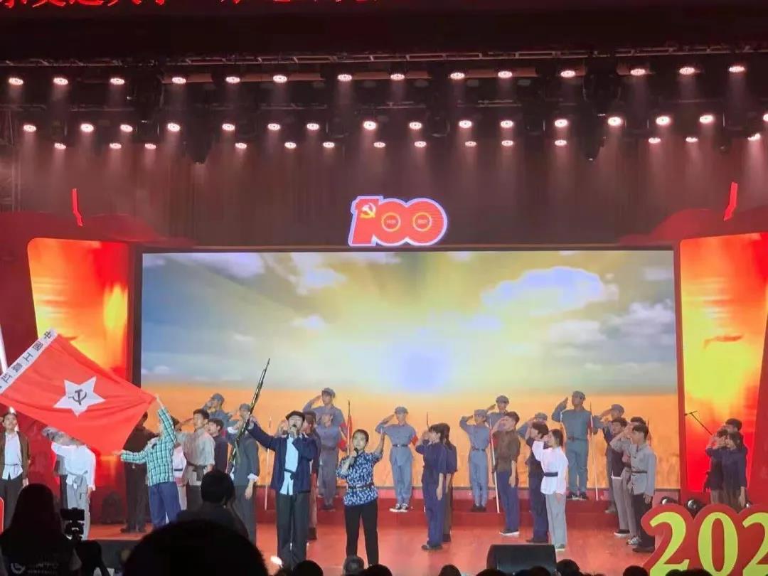 “看今朝,太平盛世,时代新人奋力前行,红色青春歌咏芳华”,公司参演人员巧妙地结合了舞蹈和演唱两种形式,通过歌声和表演缅怀革命先烈。表演者们着各色农民服装,执红缨枪,为现场观众还原了秋收起义时所有农民揭竿而起,工友农友团结一心,开辟第一个农村革命根据地的情景。高亢嘹亮的歌声混杂着现场观众经久不息的掌声响彻了整个礼堂。