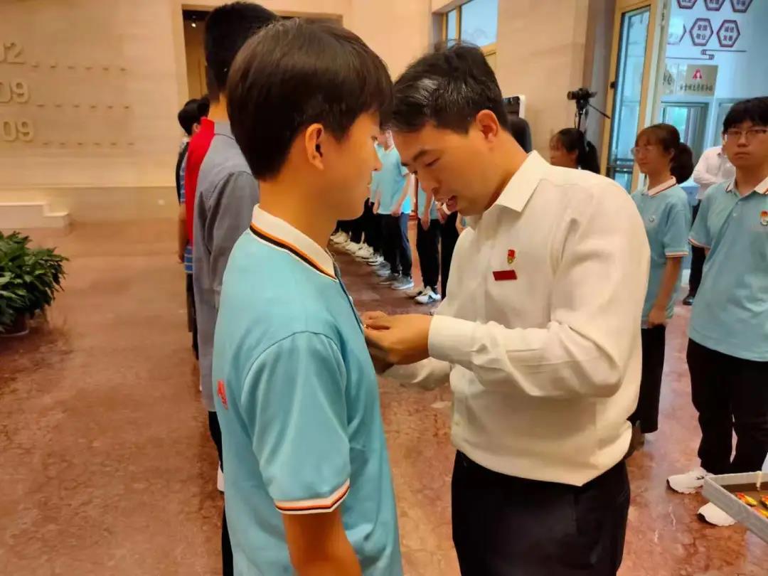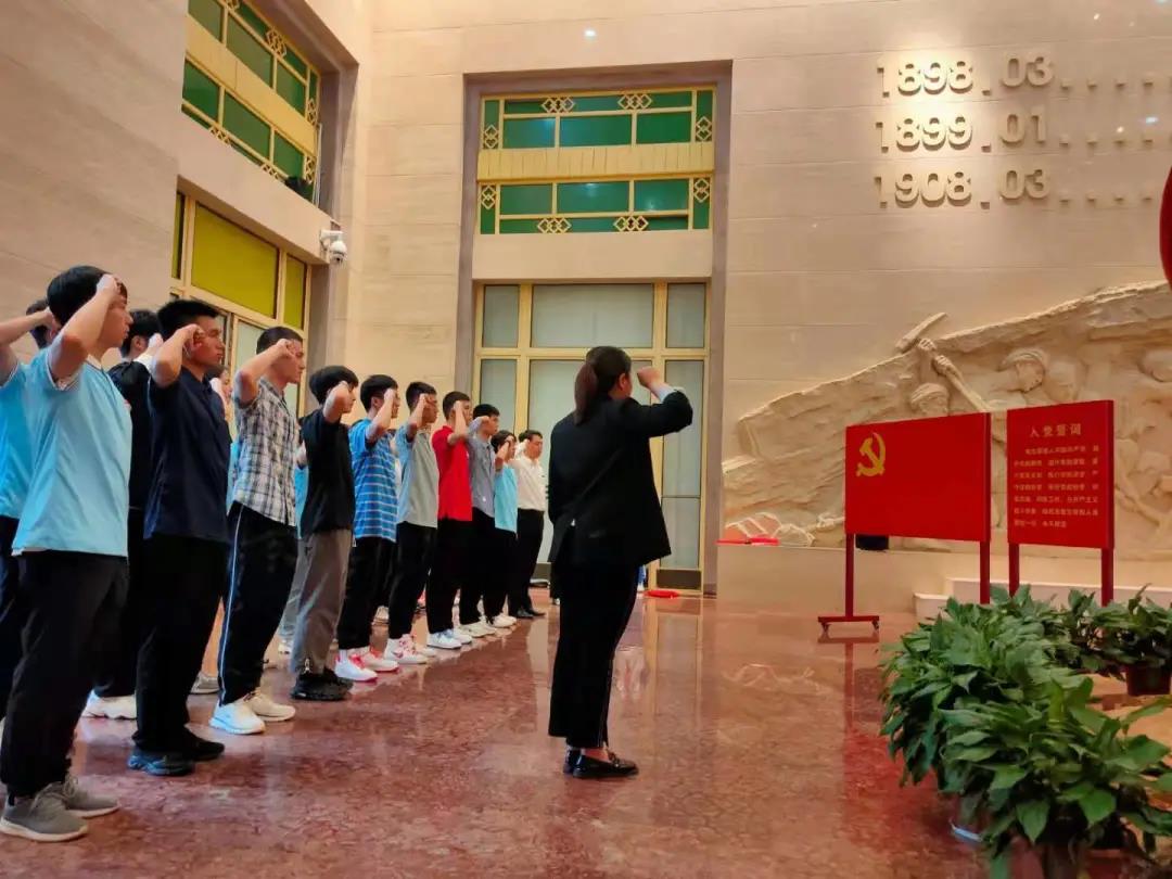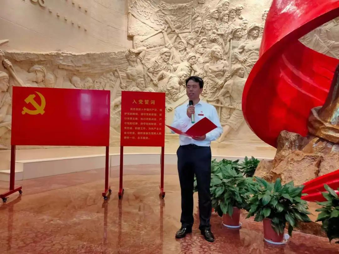 组织入党一生一次,思想入党一生一世,一大批优秀分子加入到党组织中来,为党注入了新鲜血液。纪念馆内,yl6809永利新发展党员站成一排,刘修财、武婷婷为其佩戴党徽。