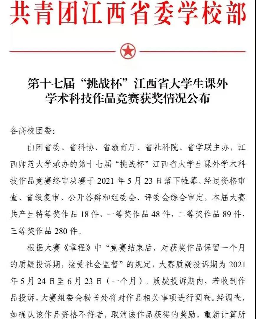 公司员工团队获第十七届“挑战杯”省赛一等奖