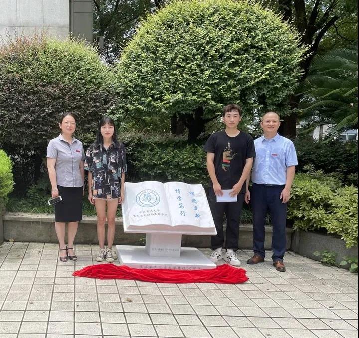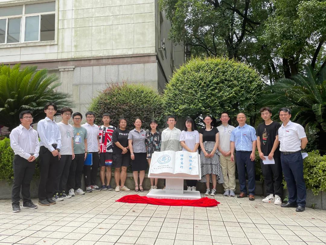 院领导与卓越班同学代表进行揭幕,并与全体同学合影留念。拳拳赤子心,滴滴似水恩。这块石雕传递着他们对母校养育之情的感怀,对恩师奉献之情的感念,是他们饮水思源,感恩学院,祝福母校的心声。