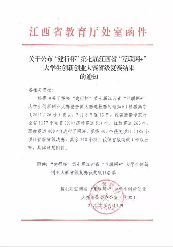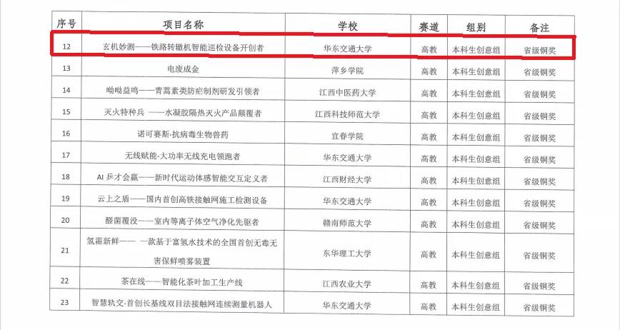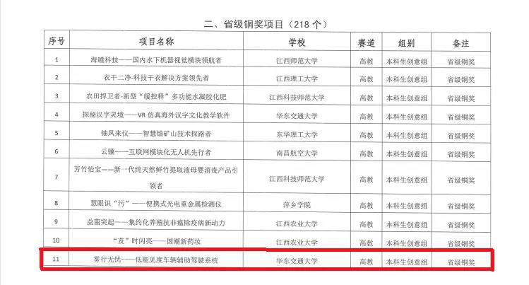 公司本科生创意组“雾行无忧——低能见度车辆辅助驾驶系统”项目团队与“玄机妙测——铁路转辙机智能巡查设备开创者”项目团队获“建行杯”第七届江西省“互联网+”老员工创新创业大赛省级铜奖。