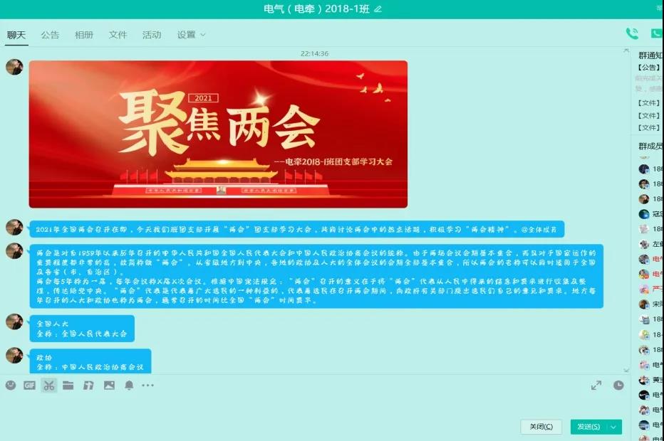 观看完直播后,由各团支部书记担任主讲人,各个支部开展两会团支部学习大会,积极学习两会精神,正确认识两会知识,专题讨论同学们最关心的两会热点话题。如何提升突发公共卫生事件应对能力?如何进一步深化大数据应用提升社会治理效能?如何化解“生育焦虑”?如何确保脱贫攻坚向乡村振兴平稳过渡?每一个方面都是同学们所关心的热点话题。